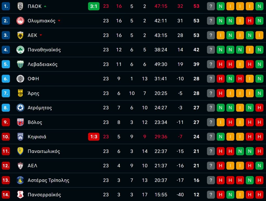 Η βαθμολογία της Superleague μετά το…σόου Φωτιά-VAR στο Κηφισιά-ΠΑΟΚ
